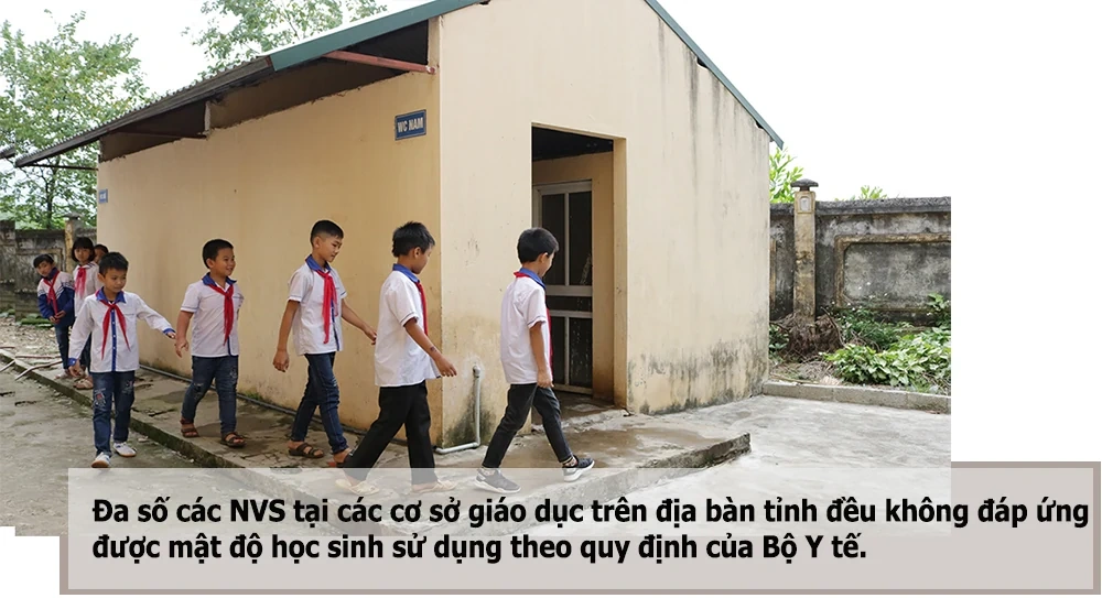 Ở các trường nông thôn, rất nhiều nhà vệ sinh trường học xuống cấp, cần xây mới. Để xây một khu vệ sinh kiên cố, biệt lập với các dãy phòng học, phục vụ cho 500-1.000 học sinh, theo tính toán cần khoảng 100-200 triệu đồng. Tuy nhiên, việc huy động từ ngân sách rất khó, các trường phải trông chờ vào nguồn xã hội hóa hoặc dự án của các tổ chức phi chính phủ.