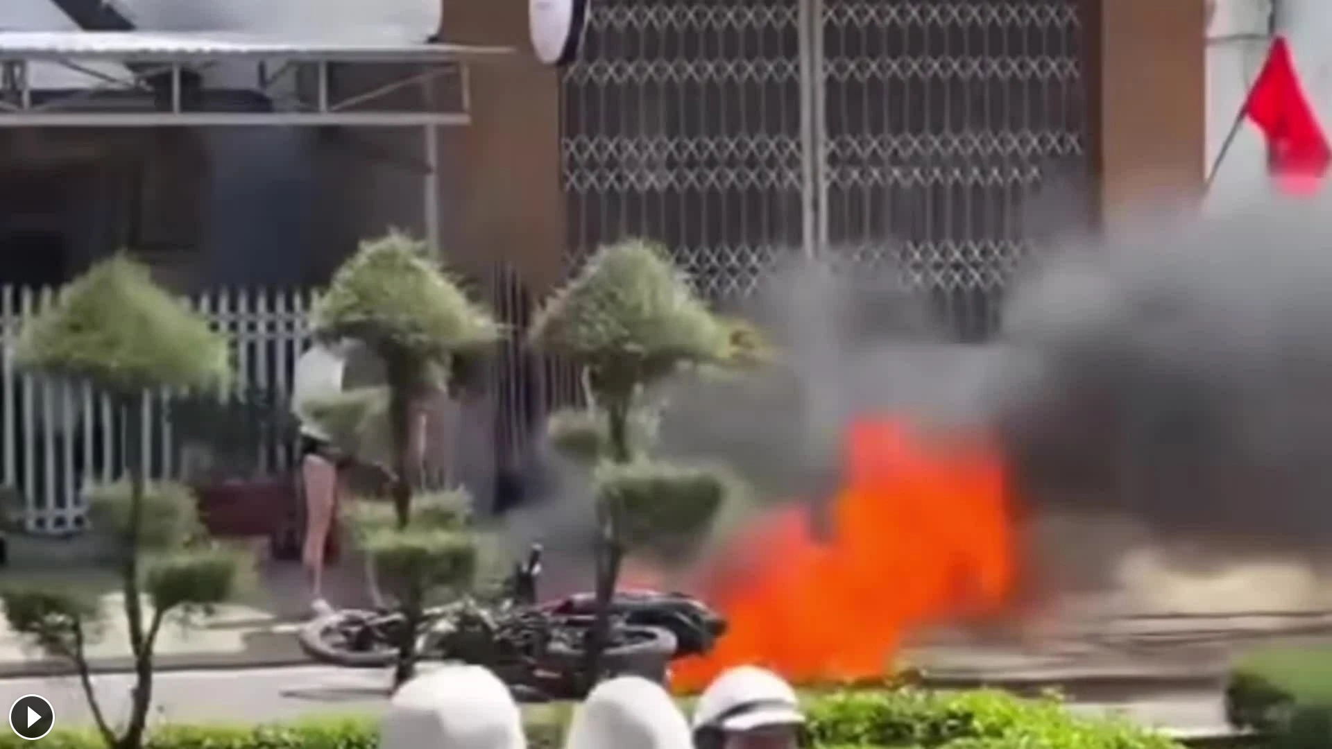 Sau đó, Thắng đạp ngã xe, châm lửa vào bình xăng, ngọn lửa bao trùm xe máy. Thắng tiếp tục đến gần các chiến sĩ đe dọa, liên tục chửi bới mặc cho sự can ngăn của người phụ nữ đi chung và người dân xung quanh.