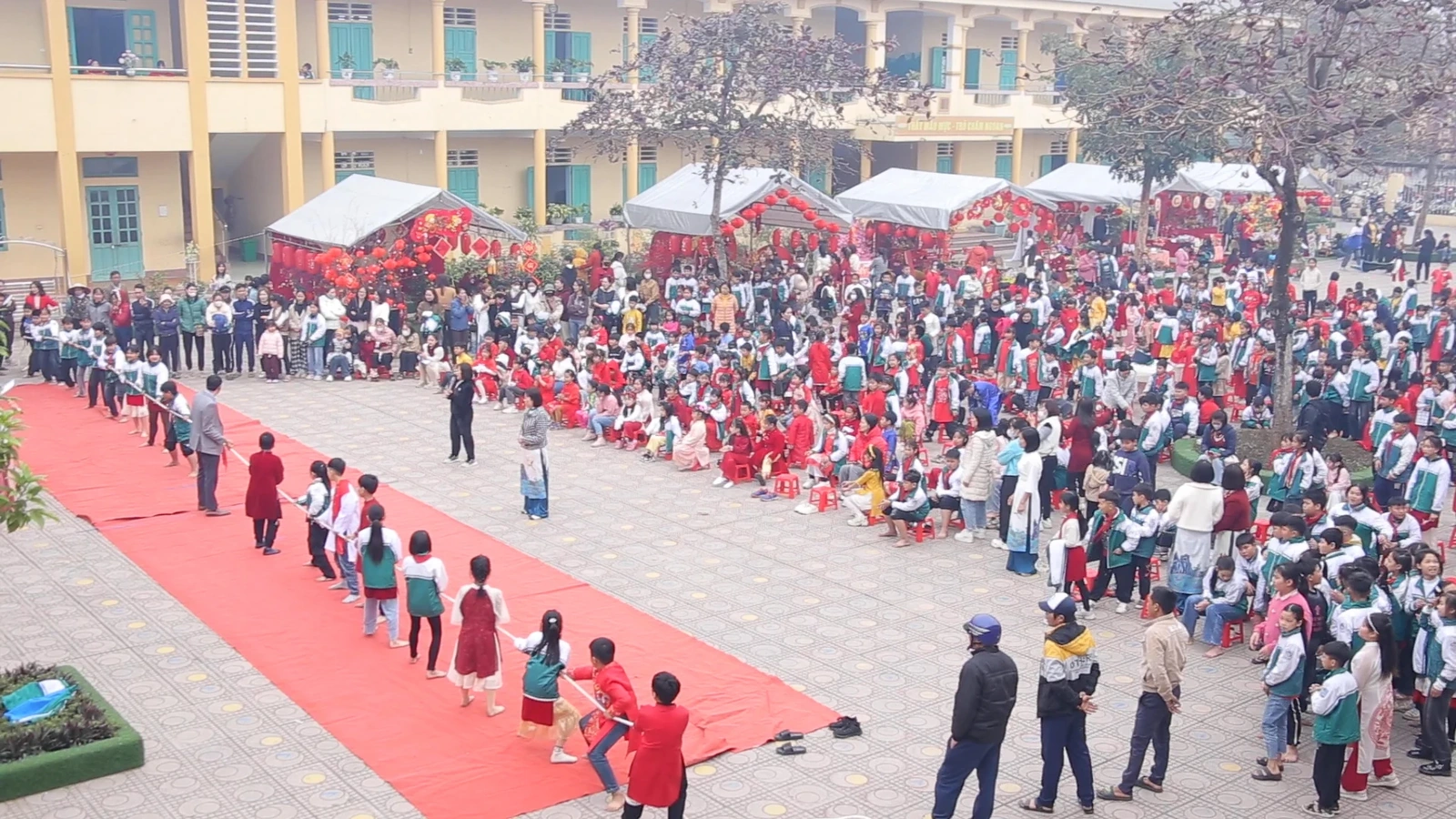 Trò chơi kéo co được tổ chức tại Trường Tiểu học Thạch Sơn, huyện Lâm Thao trong dịp Tết Nguyên Đán 2025.