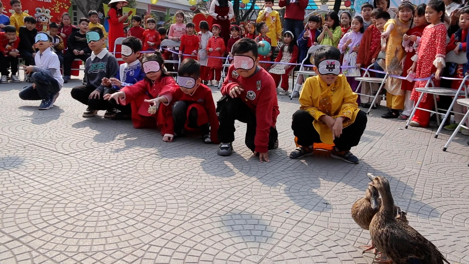 Các em học sinh Trường Tiểu học Tân Dân, TP Việt Trì tham gia trò chơi bắt vịt.