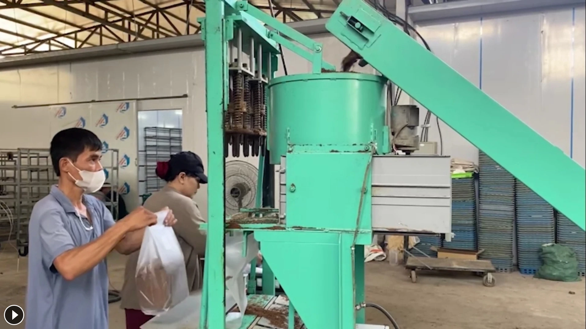 Các bầu trồng nấm được xử lý bằng máy thanh trùng trong thời gian dài