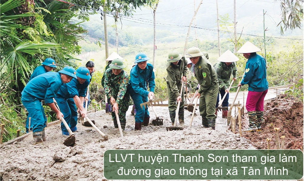 Bám sát quan điểm đó, thời gian qua, Bộ CHQS tỉnh thường xuyên chỉ đạo các đơn vị địa phương xuống cơ sở, xây dựng, củng cố địa bàn, giúp đỡ nhân dân, củng cố “thế trận lòng dân”. Còn nhớ những ngày đầu năm 2021, khi chúng tôi về xã Võ Miếu đúng ngày lực lượng vũ trang huyện Thanh Sơn cùng với dân quân các xã Võ Miếu, Địch Quả, Thục Luyện, Cự Thắng ra quân làm đường bê-tông, sửa chữa, xây dựng nhà ở cho các gia đình chính sách. Sau hơn một tháng triển khai, hơn 3km đường được bê tông; ba hộ gia đình chính sách và hai nhà văn hóa khu được hỗ trợ ngày công xây dựng đã hoàn thành; nhiều buổi giao lưu văn nghệ, thể thao được tổ chức với sự tham gia của quần chúng nhân dân và LLVT đã tạo niềm tin, phấn khởi gắn kết tình nghĩa quân dân.