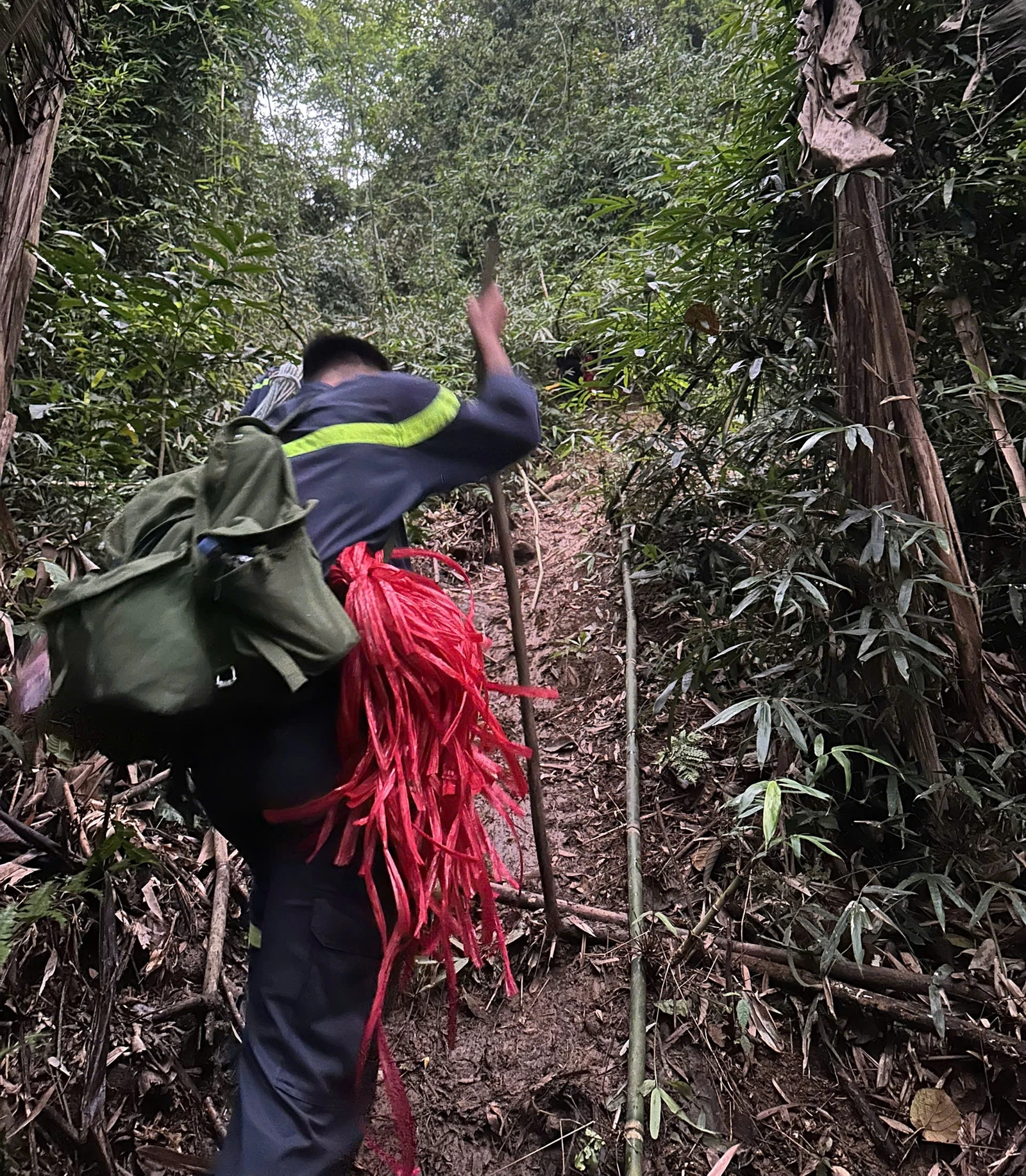 Trong quá trình tìm kiếm, lực lượng mang theo dây gai màu đỏ để đánh dấu toạ độ và thông tin cho nhóm khác biết khu vực đã tìm kiếm; đồng thời sử dụng các thiết bị như flycam gắn camera nhiệt để rà soát toàn bộ khu vực trong địa hình rừng núi phức tạp.