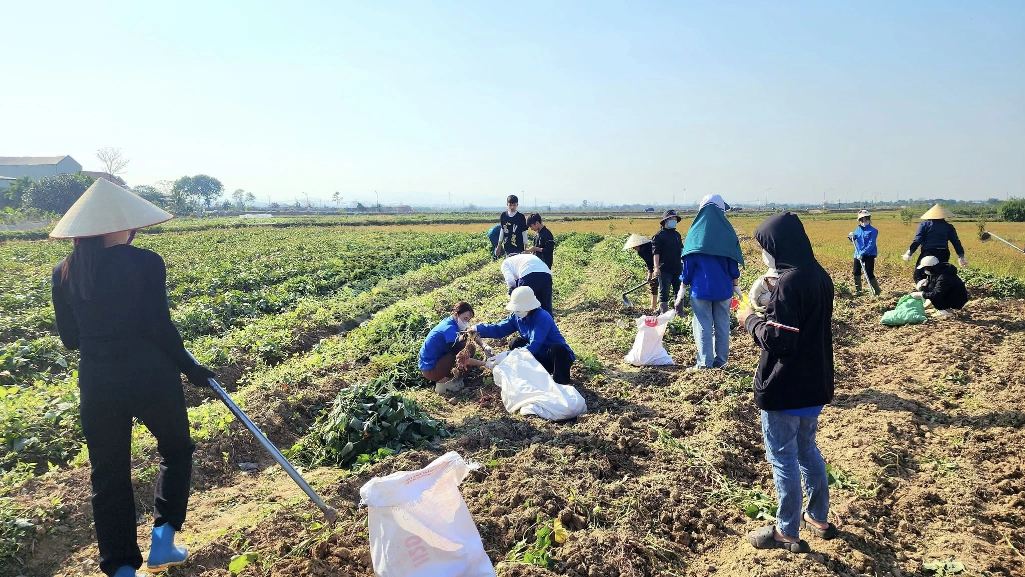 Đặc biệt, giống khoai lang Lộc Bình dễ trồng, yêu cầu thời gian chăm sóc ít hơn so với các loại cây vụ đông khác. Công việc chăm sóc chủ yếu bao gồm việc vun xới đất, xới cỏ và bón phân... Sau khi thu hoạch, khoai lang được các ĐVTN trong xã quảng bá, rao bán trên các nền tảng mạng xã hội như Facebook, Zalo... Một kết quả đáng ghi nhận là chỉ sau một ngày thu hoạch, hơn 3 tạ khoai đã được tiêu thụ hết, với giá bán ra khoảng 15.000 đồng/kg.