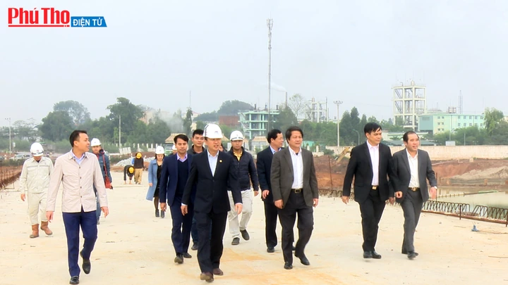 Bí thư Tỉnh ủy Hoàng Dân Mạc kiểm tra tiến độ thi công cầu Việt Trì