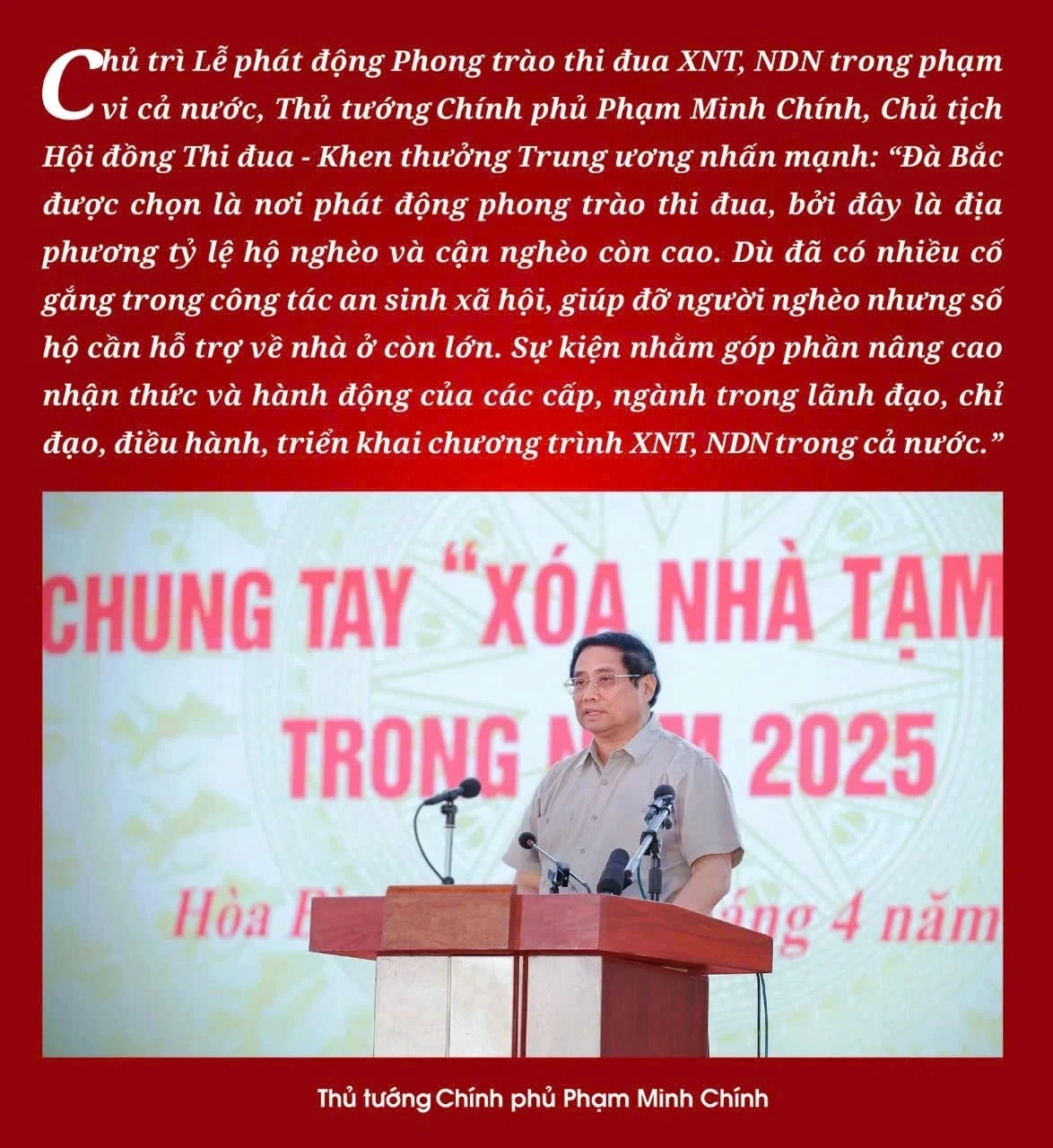 Với ý nghĩa nhân văn sâu sắc, cao đẹp, Thủ tướng tin tưởng Phong trào thi đua XNT, NDN nhận được sự hưởng ứng, ủng hộ tích cực của các tổ chức, cá nhân, doanh nghiệp và toàn xã hội với tinh thần toàn dân, toàn diện, chung sức đồng lòng vì người nghèo.